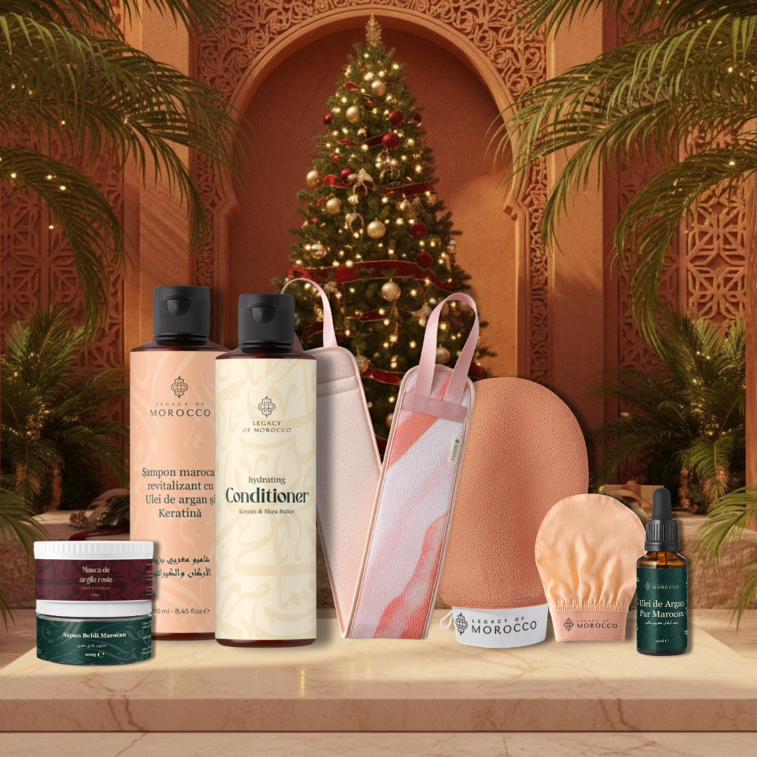 Inspirate de ritualurile autentice ale hammam-ului marocan, produsele Legacy of Morocco aduc o tradiție veche de secole în rutina ta de îngrijire. De la exfolierea profundă la hidratarea intensă cu ulei de argan pur, fiecare produs transformă îngrijirea pielii într-un ritual de răsfăț autentic. Redescoperă secretul pielii netede și catifelate, moștenit din inima Marocului.
